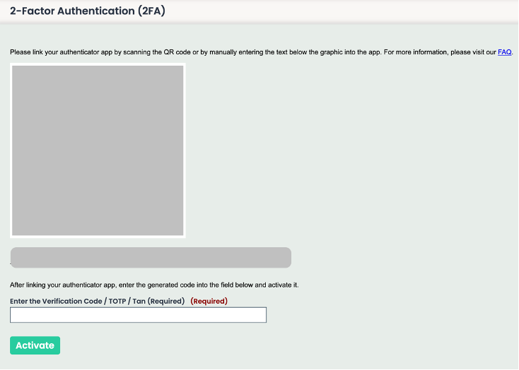 If you want to enable it using an authenticator app, go to Account Settings > Personal Data > 2-Factor Authentication (2FA) and click on "Set up and link an authenticator app" to set up and link the authenticator of your choice. It will be activated immediately by clicking on the "Activate" button.