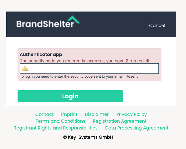 To keep your data and domains secure from unauthorized access, 2FA is a mandatory login requirement for all BrandShelter users. This protects your data, your portfolio, and your domain settings.